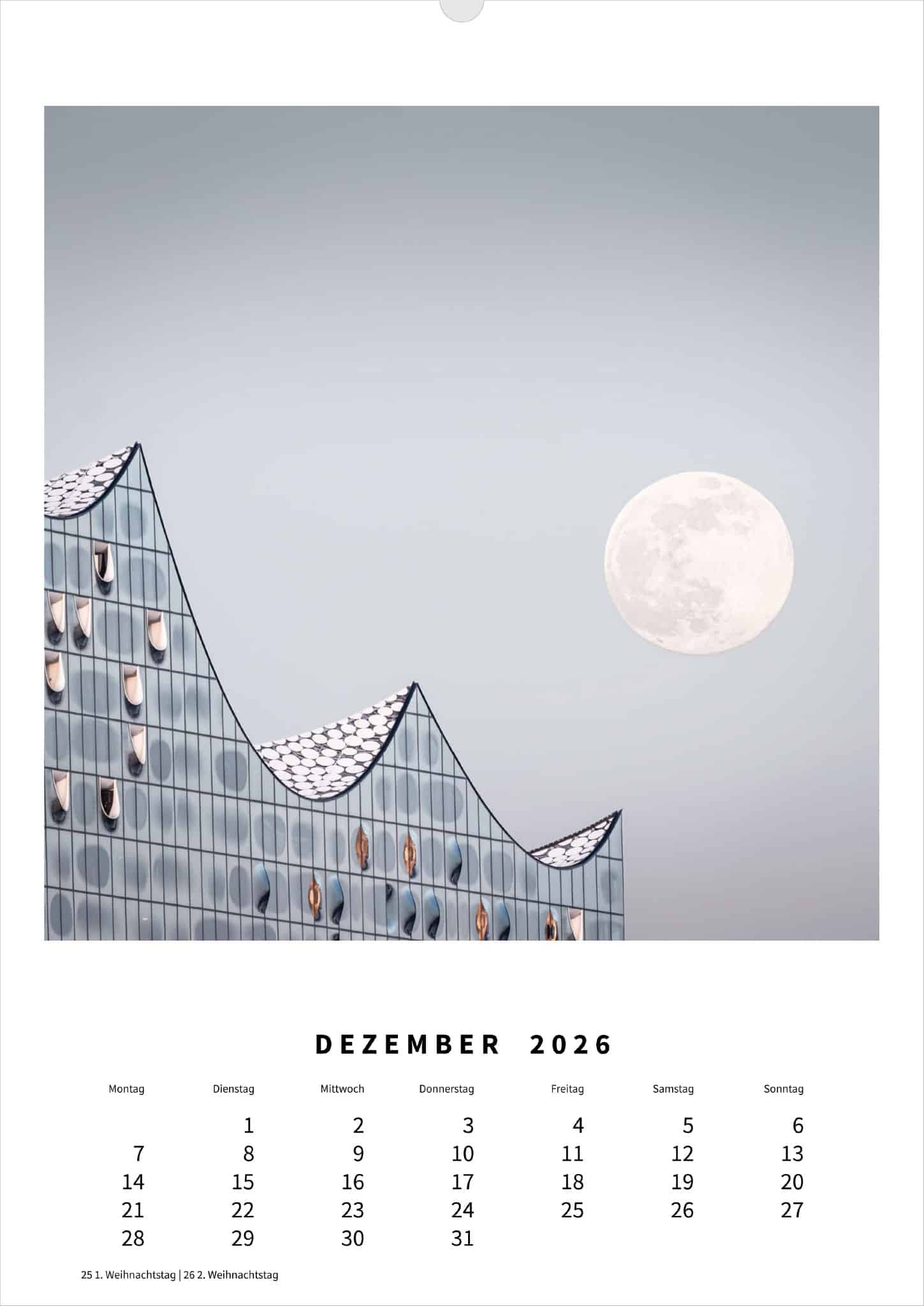 - Der Kalender hat das Hochkantformat DIN A2 (42×59,4 cm).